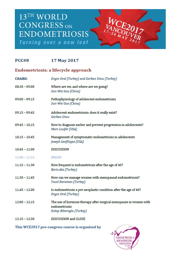 Endometriozis ve Adenomyozis Derneği Vancouver‘da 17-21 Mayıs Tarihlerinde Kanada’nın Vancouver şehrinde gerçekleştirilen Dünya Endometriozis Kongre’sinde Derneğimiz Kongre kapsamında bir kurs gerçekleştirmiştir.