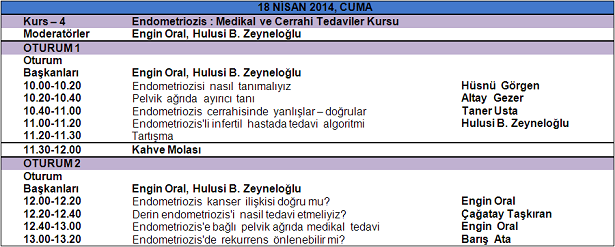 Endometriozis: Medikal ve Cerrahi Tedaviler Kursu, 18 Nisan 2014. Derneğimiz 18 Nisan 2014 tarihinde 2. Acıbadem Kadın Doğum Günleri Kongresinde ‘’Endometriozis: Medikal ve Cerrahi Tedaviler Kursu’’‘nu gerçekleştirmiştir.