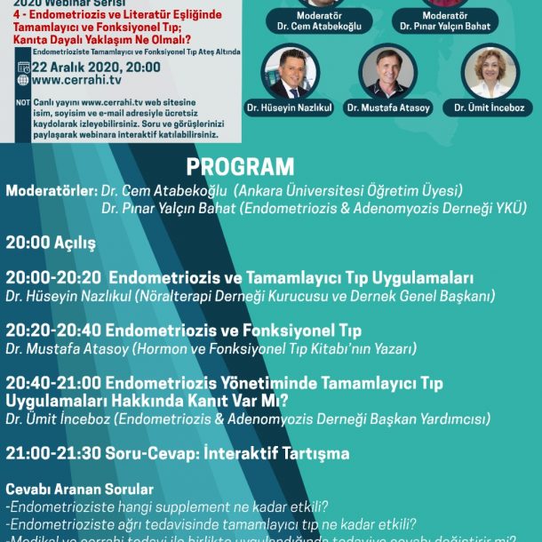 22 Aralık "Endometriozis ve Literatür Eşliğinde Tamamlayıcı ve Fonksiyonel Tıp: Kanıta Dayalı Yaklaşım Ne Olmalı?" Webinar'ı