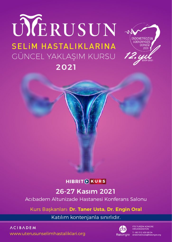 Derneğimizin organize ettiği Uterusun Selim Hastalıklarına Güncel Yaklaşım Kursu 26-27 Kasım 2021 tarihinde Acıbadem Altunizade Hastanesi Konferans Salonu’nda gerçekleşecektir. Kayıt ve detaylı bilgi için aşağıdaki bağlantıyı kullanabilirsiniz.