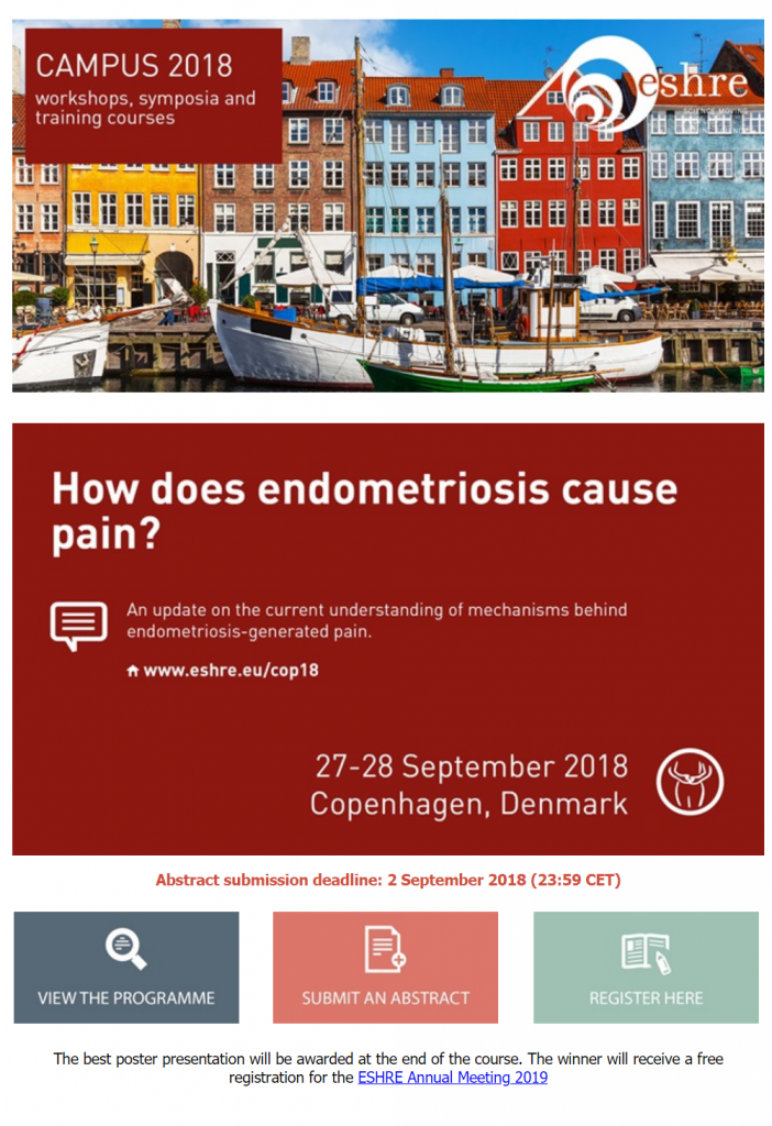 Ayrıntılı bilgi ve bilimsel program için : https://www.eshre.eu/Education/Calendar-Campus-events/How-does-endometriosis-cause-pain.aspx