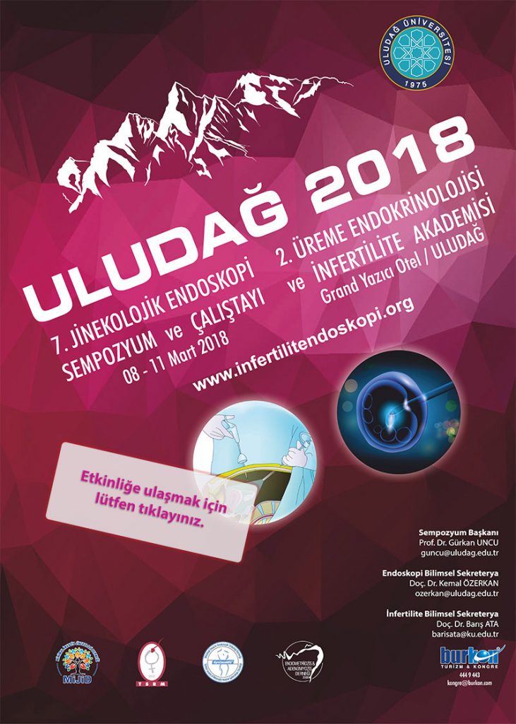 Uludağ Üniversitesi Tıp Fakültesi Kadın Hastalıkları ve Doğum Anabilim Dalının düzenlediği 2. Üreme Endokrinolojisi ve İnfertilite Akademisi – 7. Jinekolojik Endoskopi Sempozyum ve Çalıştayında 9 Mart 2018 tarihinde Derneğimiz “Endometriozis-Ağrı/İnfertilite Yönetimi” konulu katılımın yoğun olduğu bir oturum gerçekleştirdi. Değerli Üyelerimizden Prof. Dr. Engin Oral, Prof. Dr. Ümit İnceboz, Dr. Pınar Bahat, Dr. Işıl Kasapoğlu oturumda konuşmacı olarak yer aldılar. Ekibimizden Dr. Ezgi Darıcı ve Dr. Hale Göksever Çelik de destek olarak Uludağ 2018’de idiler. Katılımcılara ve emeği geçen herkese ilgisi için teşekkür ediyoruz.