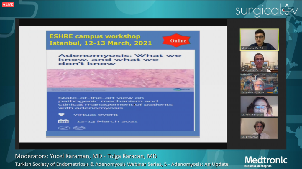 We organized the webinar “Adenomyosis: An Update 2021” as Turkish Society of Endometriosis and Adenomyosis. Stefano Guerriero, MD (Italy) , Erkut Attar, MD (Turkey) and Miklos Koppan, MD (Hungary) shared their experiences with their presentations in this webinar moderated by Yücel Karaman, MD and Tolga Karacan, MD. We tried to answer many questions with case presentations and interactive discussion sessions. We’d like to thank our dear attendees for their intense interest .