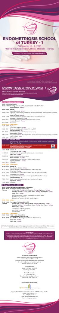 The Endometriosis School of Turkey, which we organized the first one this year, was held on 10-11 December 2018 in Istanbul with an impressive participation. The 2-day course, included both lectures on endometriosis, live surgery and a practice session with a wet-lab training. It was an inspiring course for the young colleagues. Skilled endometriosis experts gave excellent lectures.