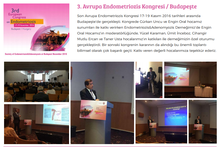 The 3rd European Congress of Endometriosis (Europian Endometriosis League) will be held on 17-19 November 2016 in Budapest / Hungary. At the European Endometriosis Congress, Endometriosis will give a scientific contribution by conducting a special session in the Adenomyosis Society.