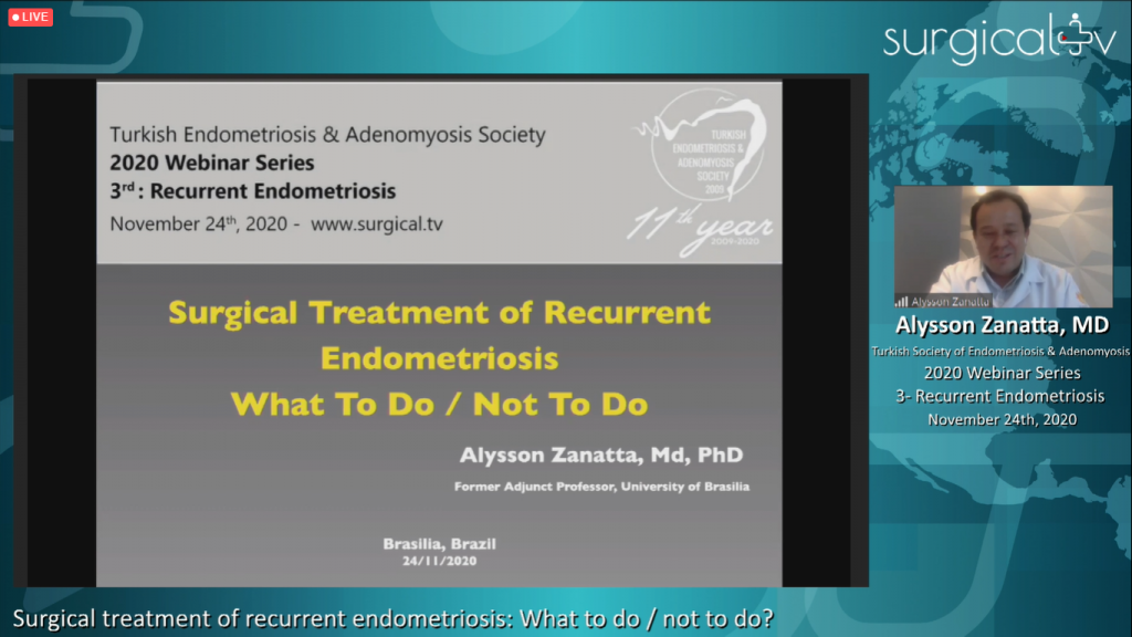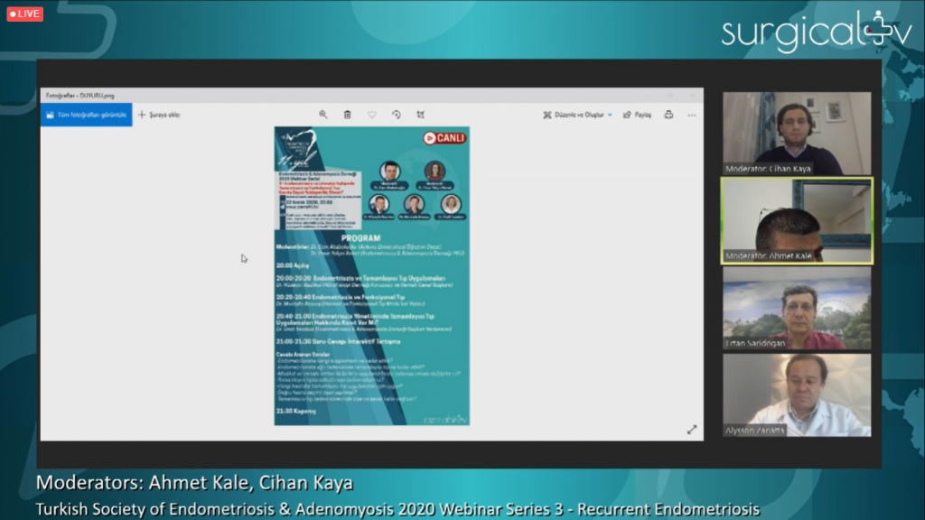 On the evening of November 24th, 2020, we successfully held the webinar organized by the Endometriosis and Adenomyosis Society. The webinar was moderated by Ahmet Kale, MD and Hale Göksever Çelik, MD. In the webinar Ertan Sarıdoğan, MD from England and Alysson Zanatta, MD from Brazil made presentations on “How should be the diagnosis, medical and surgical treatment of recurrent endometriosis?”. At the end of the webinar, we tried to convey our knowledge to our participants by answering many questions that were asked in the interactive discussion section. We would like to express our endless thanks to our colleagues and esteemed moderators and presenters who participated in our webinar…