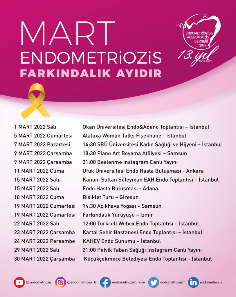 Endometriozis ve Adenomyozis Derneği olarak farkındalık çalışmalarımızı sizinle paylaşmaktan büyük mutluluk duyuyoruz.