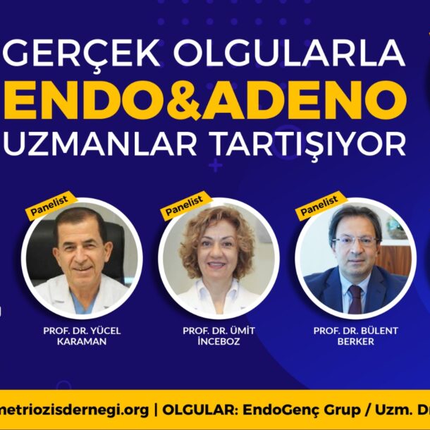 Türkiye Endometriozis ve Adenomyozis Derneği’nin webinar serisi ‘Gerçek Olgularla ‘Endo&Adeno’ Uzmanlar Tartışıyor’, 5 Nisan 2022 tarihinde gerçekleşti. Prof. Dr. Yücel Karaman, Prof. Dr. Ümit İnceboz, Prof. Dr. Bülent Berker ve Doç. Dr. Yusuf Aytaç Tohma’nın tartışmacı olarak katıldığı webinarın moderatörlüğünü Prof. Dr. Engin Oral yaptı. Webinarımızda interaktif vaka sunumları ile endometriozisin zorlu vakaları tartışıldı. Katılımınız için teşekkür ederiz.