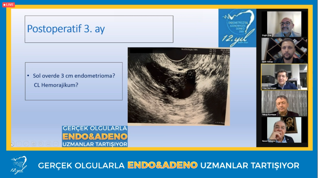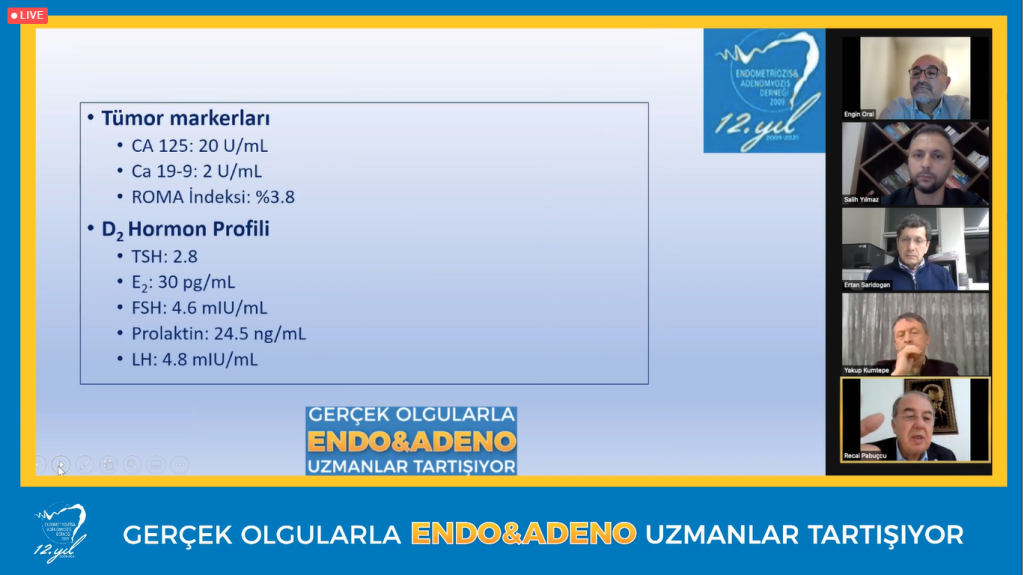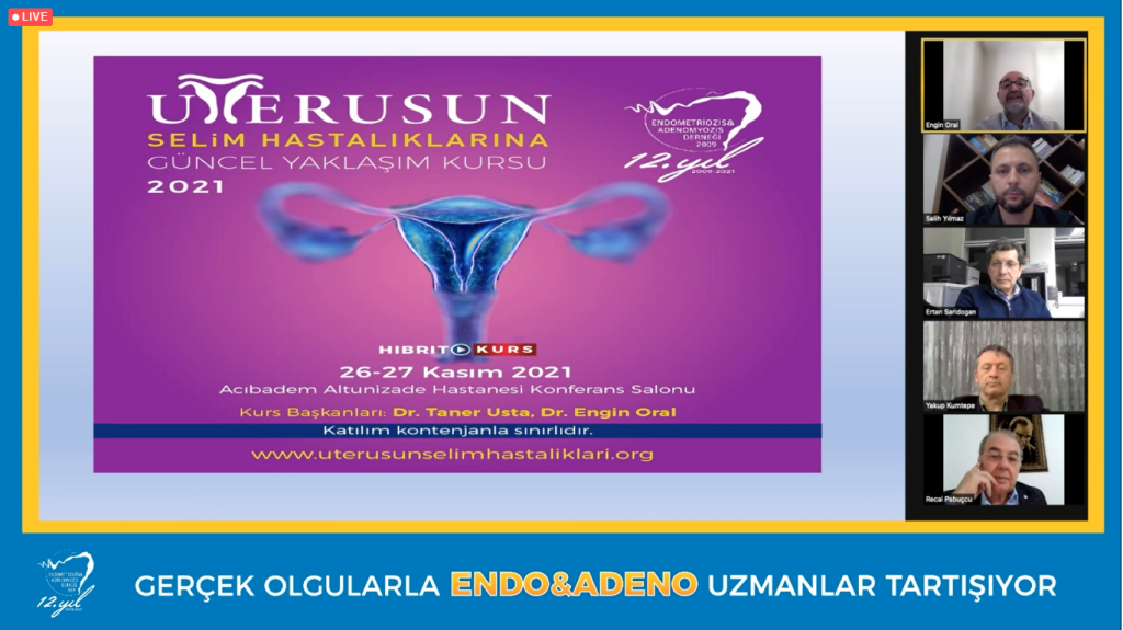 Türkiye Endometriozis ve Adenomyozis Derneği’nin yeni webinar serisi ‘Gerçek Olgularla ‘Endo&Adeno’ Uzmanlar Tartışıyor’, 26 Ekim 2021 tarihinde başladı. İlk webinar, Prof. Dr. Engin Oral moderatorlüğünde, Prof. Dr. Recai Pabuçcu, Prof. Dr. Ertan Saridogan ve Prof. Dr. Yakup Kumtepe’nin katilimlariyla gercekleşti. Webinarı aşağıdaki linke tıklayarak izleyebilirsiniz.
