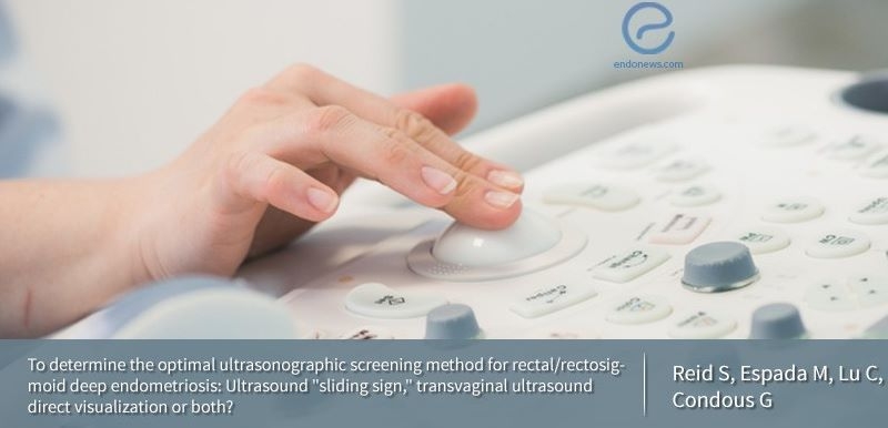Avustralya ve Birleşik Krallık’tan bir grup bilim insanı olan Reid ve arkadaşları “Acta Obstetricia et Gynecologica Scandinavica” adlı dergide “Rektal/rektosigmoid derin endometriozisi belirlemede en iyi ultrasonografik görüntüleme metodu: Transvajinal ultrason kullanılarak bakılan “kayma işareti”, doğrudan görüntüleme veya ikisi birden?” başlıklı bir makale yayınlamışlardır. Yazarlar, rektal/rektosigmoid endometriozisin ameliyat öncesi değerlendirilmesinde en doğru görüntüleme metodunu (transvajinal ultrason kullanılarak “kayma işareti” veya barsakların doğrudan görüntülenmesi veya iki tekniğin kombine edilmesi) araştırmışlardır.
