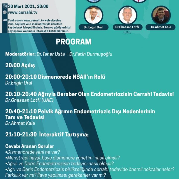 14. Dünya Endometriozis Kongresi (WCE 2021) 6-10 Mart 2021 tarihlerinde gerçekleşecektir. Detaylı bilgiye aşağıdaki linkten ulaşabilirsiniz.