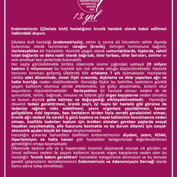 Derneğimizin Prof. Dr. Turan Çetin ve Doç. Dr. Cihan Kaya başkanlığında düzenlediği, Her yaşta Endometriozis, Endometrioma ve önemli klinik durumlar ve olgu sunumları ile edometrioma adlı üç oturumdan oluşan 14. Endoakademi 12 Haziran 2022’de Adana HiltonSa’de gerçekleştirilecektir.